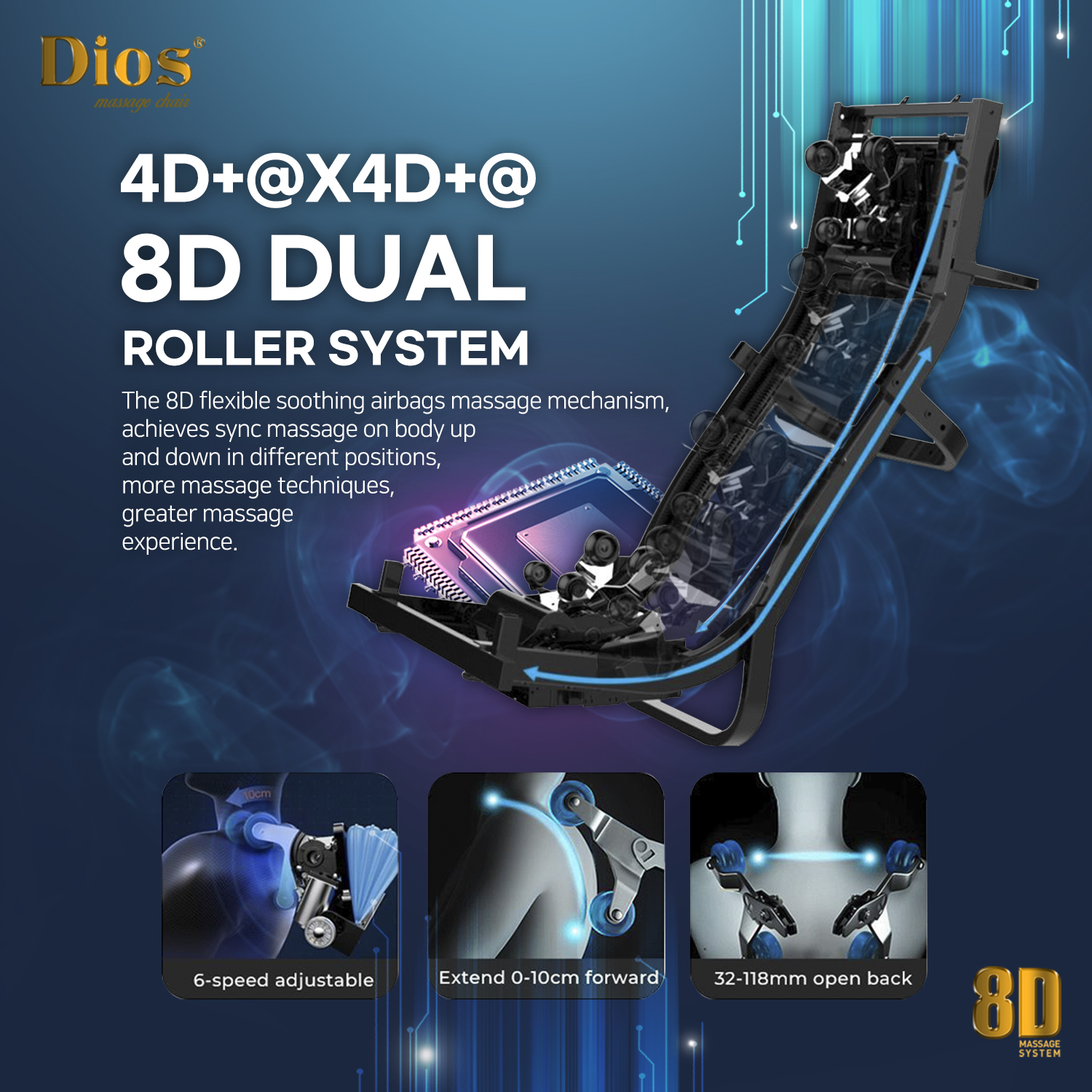 • 8D Dual Massage Technology – Simultaneous Upper & Lower Body Massage